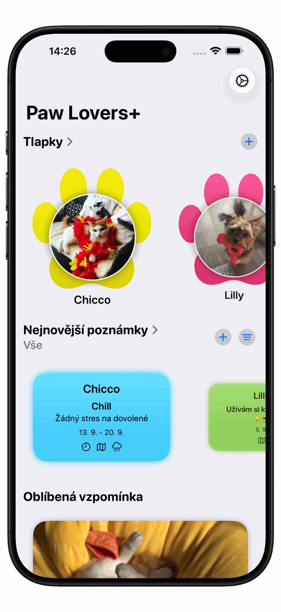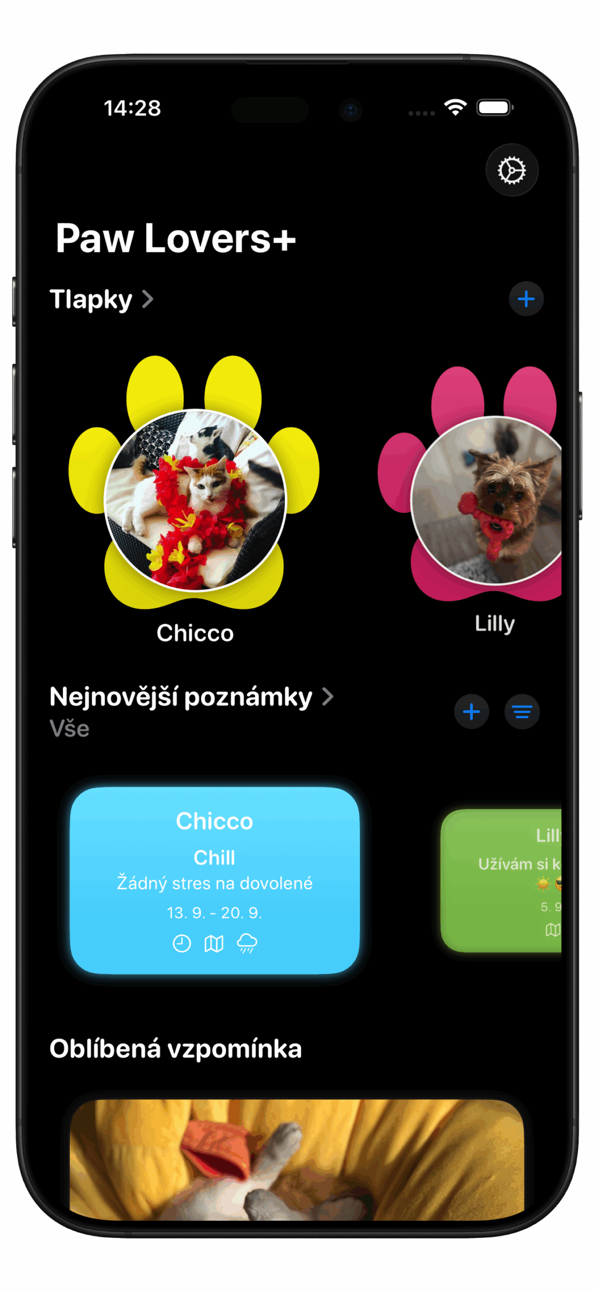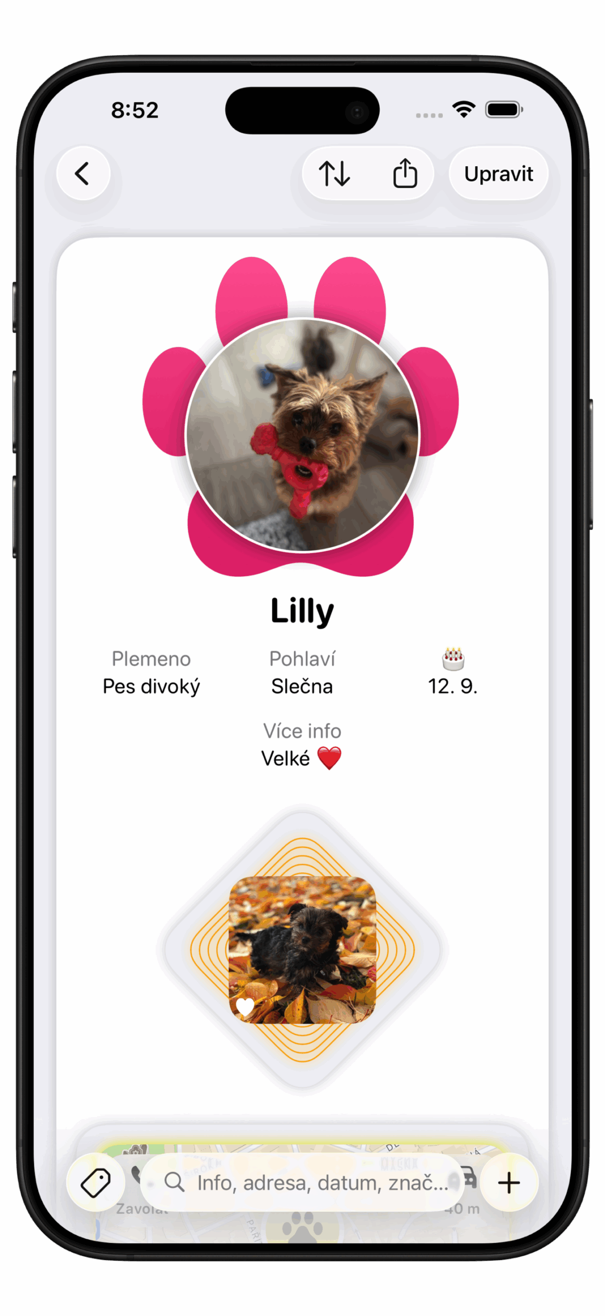 Vytvoř si Kartu tlapky a připoj poznámky, fotky, oznámení, svého veterináře, synchronizaci s kalendářem nebo mapy.