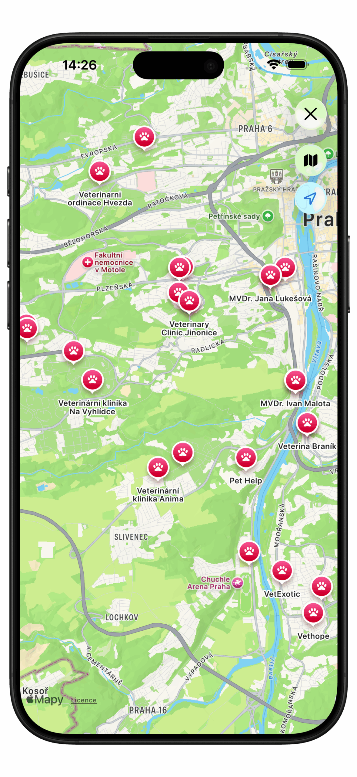 Zobraz si nejbližší veterináře, ať už jsi kdekoli na světě.