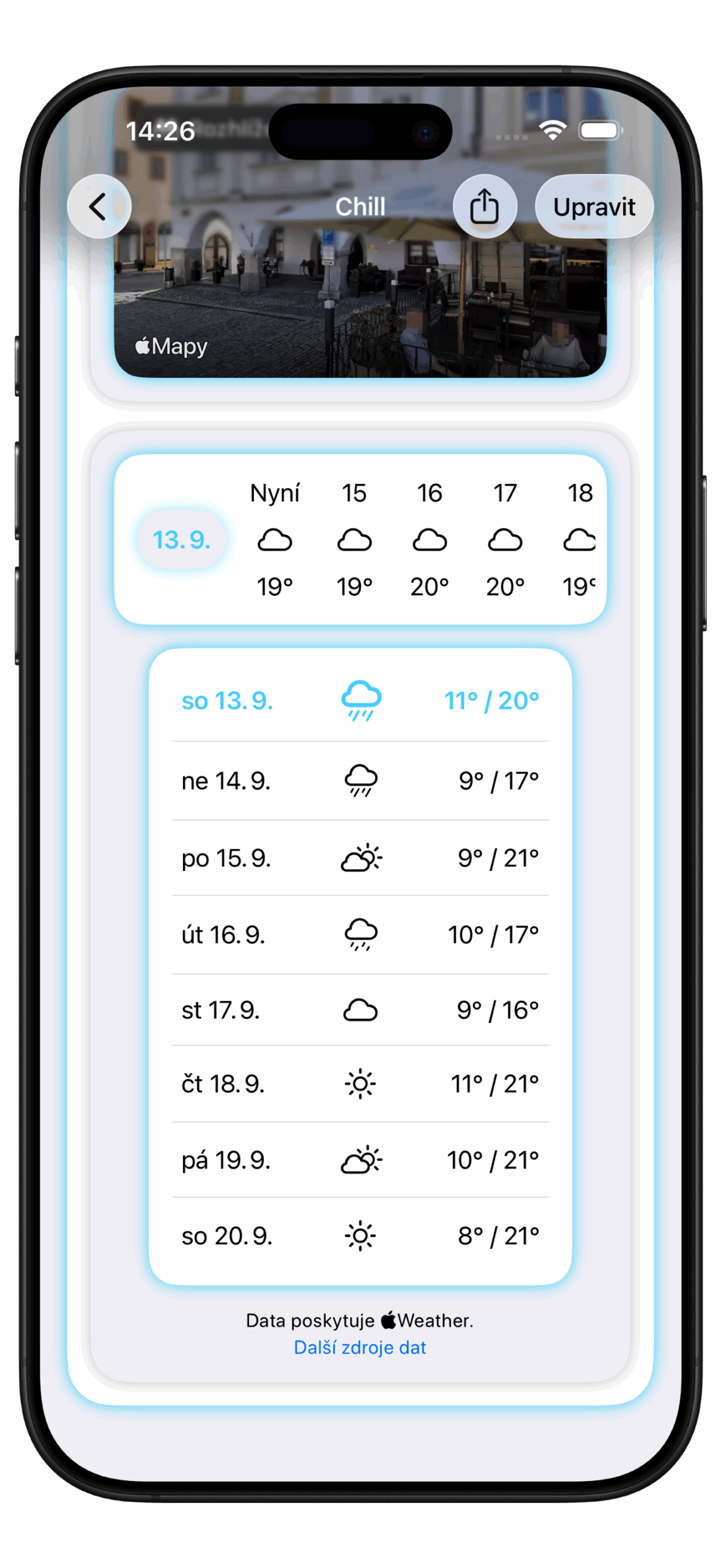 Zkontroluj přesnou hodinovou a denní předpověd počasí včetně důležitých výstrah.